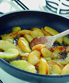 Questa ricetta è preparata con mele Renette profumate al Calvados, un liquore francese dal profumo intenso, prodotto dalla distillazione del sidro. Un liquore perfetto dunque da accostare alle Renette, frutti aromatici e dal gusto leggermente acidulo.