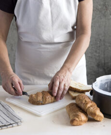 Tagliate i croissant a metà, nel senso della lunghezza.