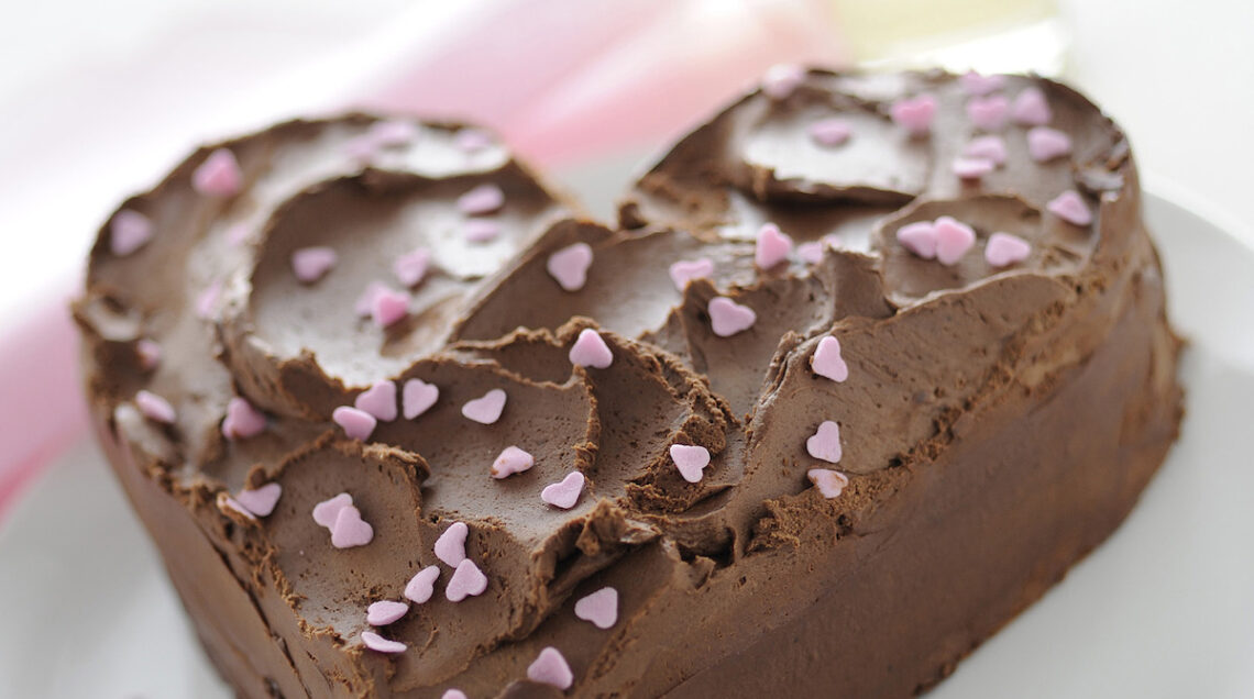 Un dolce classico a tutto cioccolato per la festa degli innamorati. Con marmellata di arance e cuoricini rosa di zucchero