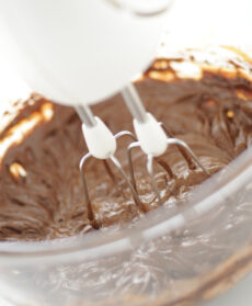 Aggiungete la farina e il composto di burro e cioccolato ai tuorli e mescolate per amalgamare bene gli ingredienti. Unite anche gli albumi a neve, con movimenti dal basso verso l'alto. Suddividete il composto ottenuto nei 2 stampi foderati con carta da forno bagnata e strizzata e cuocete le torte in forno caldo a 180° per circa 40 minuti.