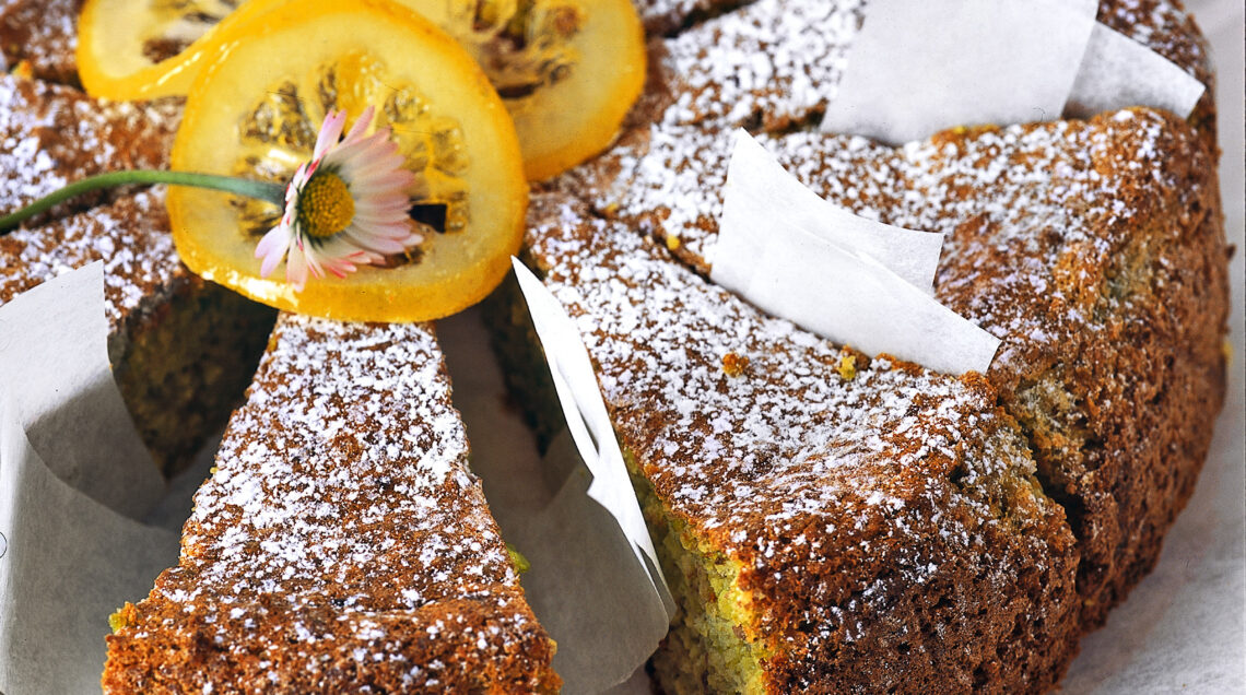 3) Cuoci in forno a 180° per 45 minuti. Fai raffreddare e decora con zucchero a velo. Se ti piace puoi anche decorare la torta di limoni e pistacchi con fette di limone candito.