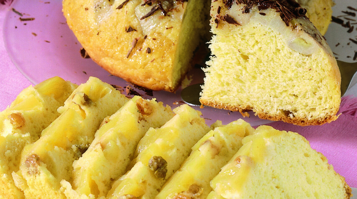 8) Verifica la cottura infilando uno stecchino nel centro del dolce: se esce asciutto è pronto. Se no, cuoci per qualche altro minuto. Sformate il dolce intiepidito e affettalo prima di servirlo.