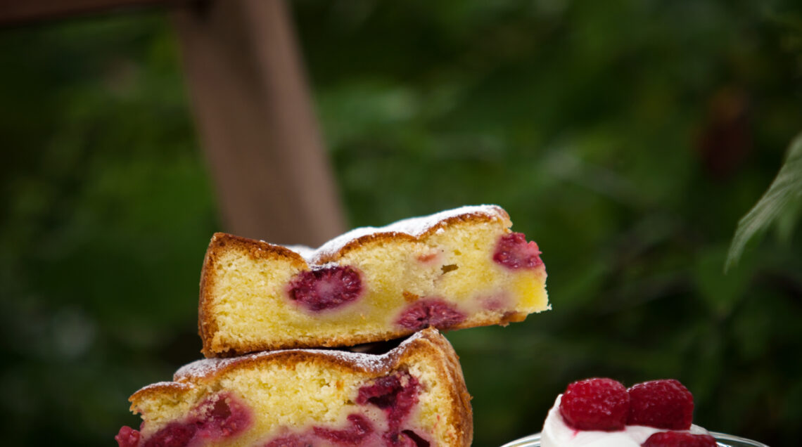 4) Una volta cotto ricoprilo di zucchero a velo e servi, se preferisci, la torta della merenda ai lamponi accompagnata di gelato alla crema.