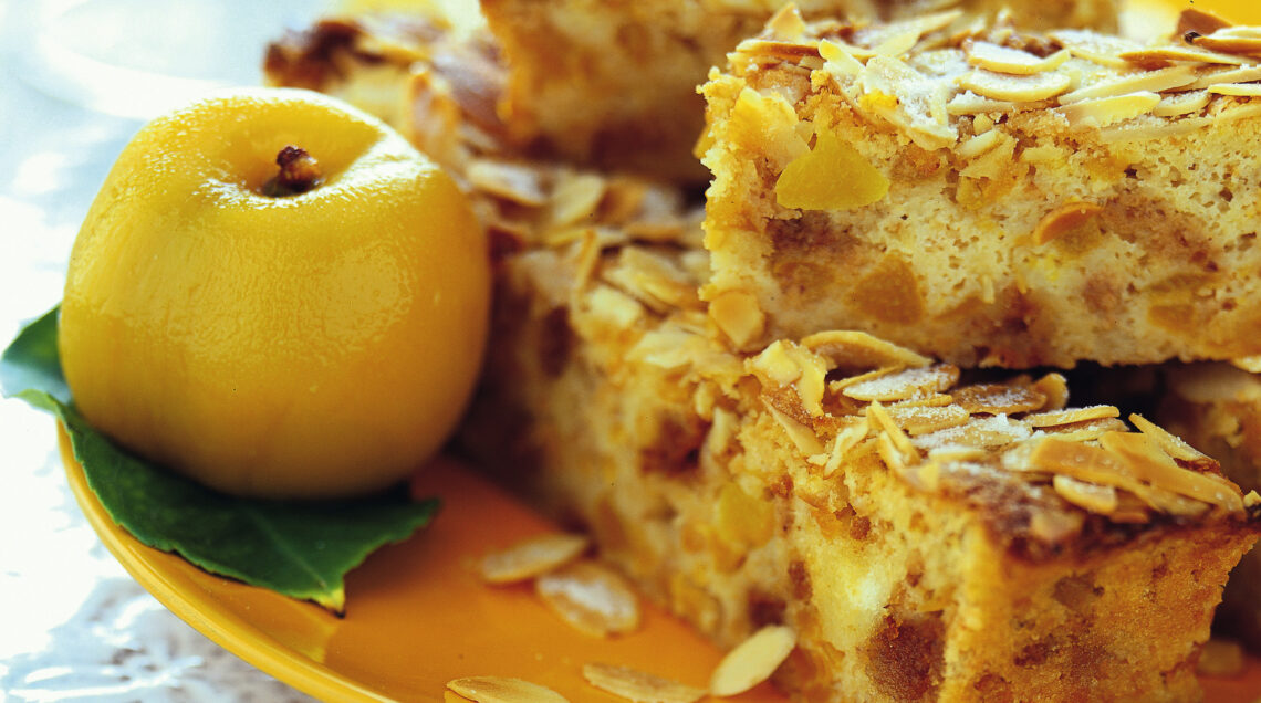 4) Cospargi tutta la torta di pesche con amaretti e savoiardi di mandorle, poi cuoci in forno preriscaldato a 180° per 45 minuti.