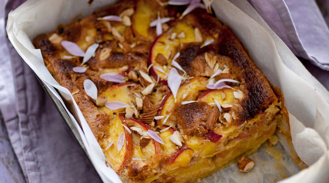 6) Cuoci la torta di pesche e amaretti nel forno caldo a 180° per circa 45 minuti.