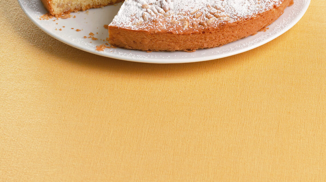 Quando la torta con pinoli alla ligure è pronta, falla raffreddare e cospargila di zucchero a velo.