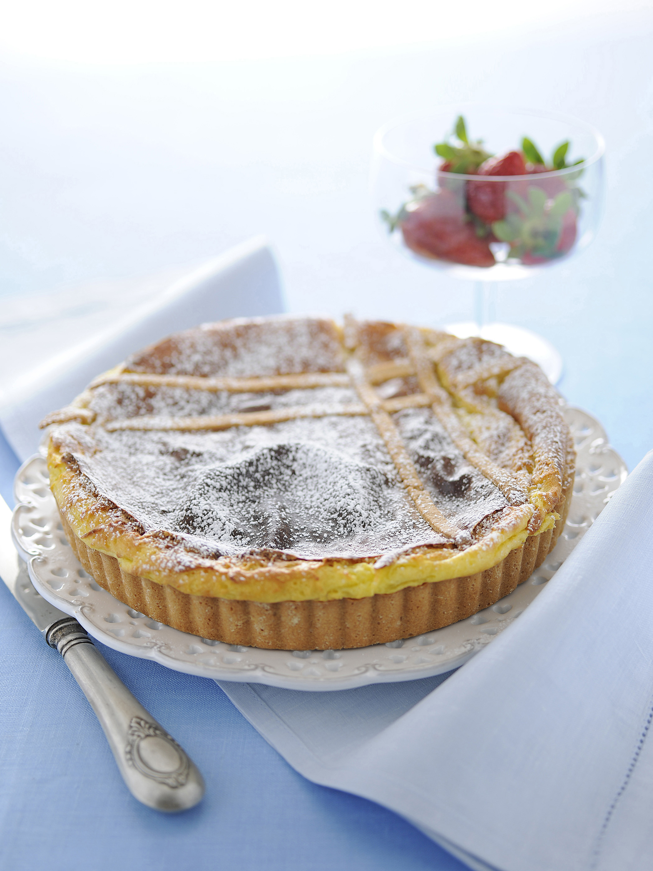 4) Una volta pronta lasciala raffreddare, poi cospargila con zucchero a velo setacciato e servila accompagnata con un coulis di fragole o di altri frutti rossi.