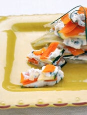 2) Passa al mixer la farina con il burro freddo a pezzetti, 50 g di zucchero e 50 ml di latte. Trasferisci sul piano di lavoro e lavora con le mani fino a ottenere una pasta liscia. Stendila sottile e trasferiscila in uno stampo rettangolare foderato con carta da forno, di 20x28 cm.