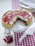 7) Guarnite la torta con il rabarbaro caramellato freddo e servi.