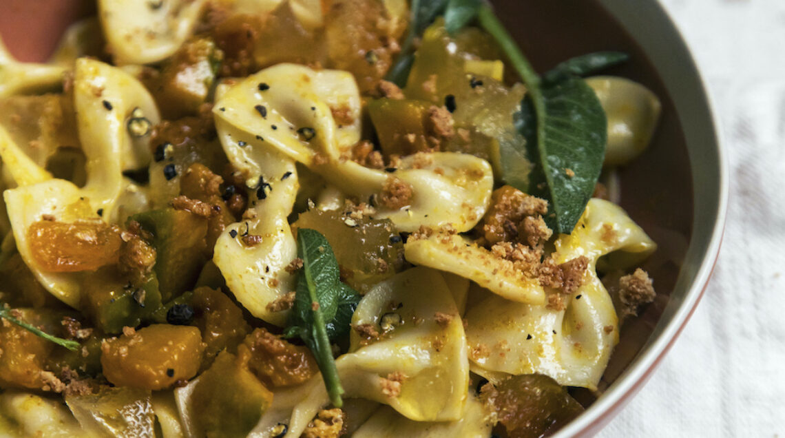 Farfalle con zucca, amaretti e mostarda di Cremona