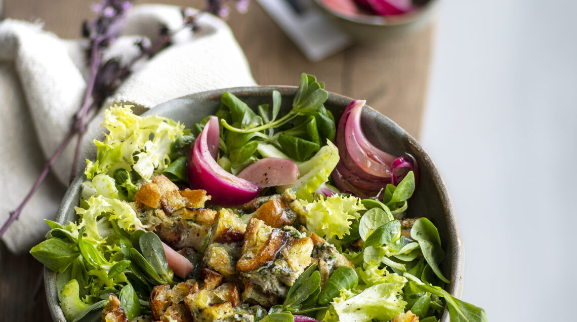 Frittata di pane con cipolle e ravanelli in agrodolce