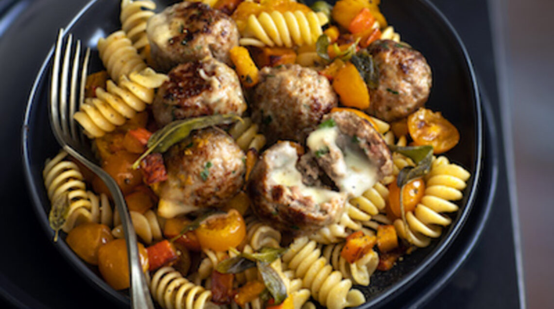 3) Lessate in fusilli in abbondante acqua bollente salata, scolateli e conditeli con il sugo di polpette e verdure.