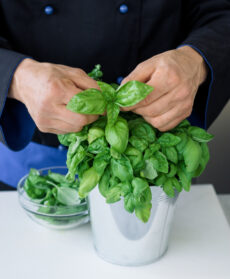 Sfogliate il basilico, lavate e asciugate le foglie.