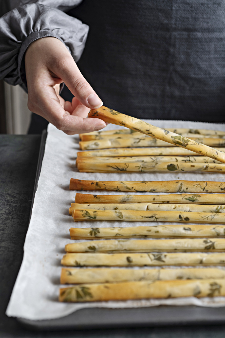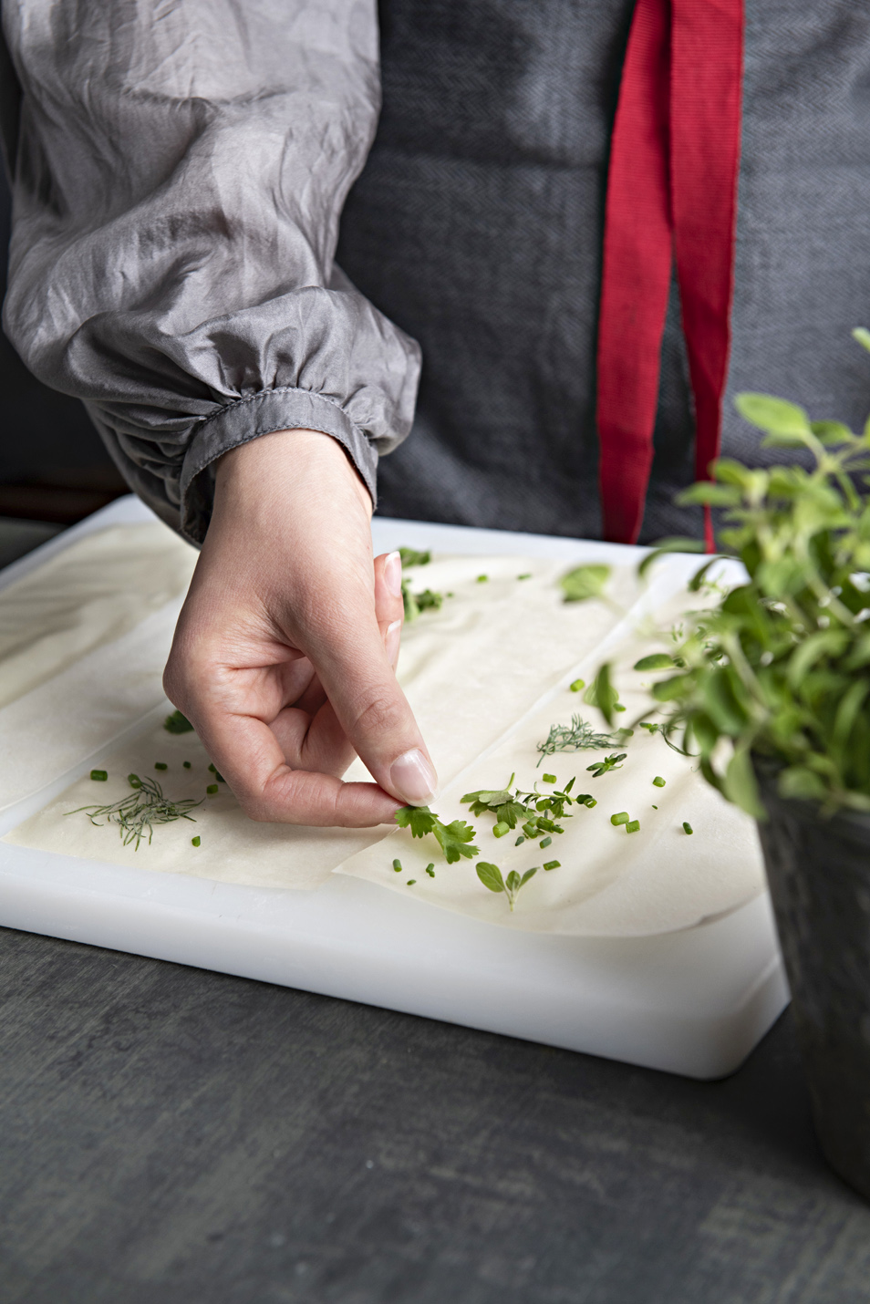 Uno snack veloce e profumato che abbina ingredienti semplici come la pasta fillo, il burro e tante erbe aromatiche. La cottura è veloce, il risultato fragrante per un sostituto del pane o un raffinato finger food da servire con l'aperitivo.