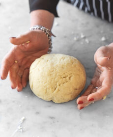 Impastate fino a ottenere un composto tipo pasta di pane, formate un panetto e lasciatelo riposare avvolto nella pellicola per 30 minuti.