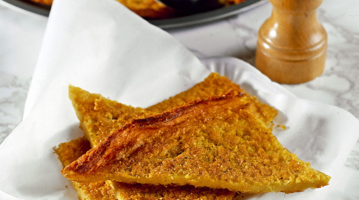 Siamo nella seconda metà del VII secolo a.C.: nei suoi versi, il poeta greco spartano Alcmane si racconta in una giornata d’inverno quando, sulla brace accesa del suo tripode, cuoce la etneos, una sorta di polenta di farina macinata grossa e mescolata con farina di ceci, fave e altre verdure e legumi, condita con abbondante olio, di cui il poeta recita le lodi. Possiamo considerarla l’antenata della farinata. Al tempo, in una cucina popolare familiare diffusa, questa semplice polentina di ceci – sebbene in diverse forme e ricette – era conosciuta in tutto il Mediterraneo, dalla Grecia alla Turchia, dalla Siria all'Egitto, fino alle Colonne d'Ercole. Considerata un piatto unico, faceva parte dell’alimentazione quotidiana, visto che i ceci nutrivano con le loro economiche proteine chi non poteva permettersi di mangiare carne.