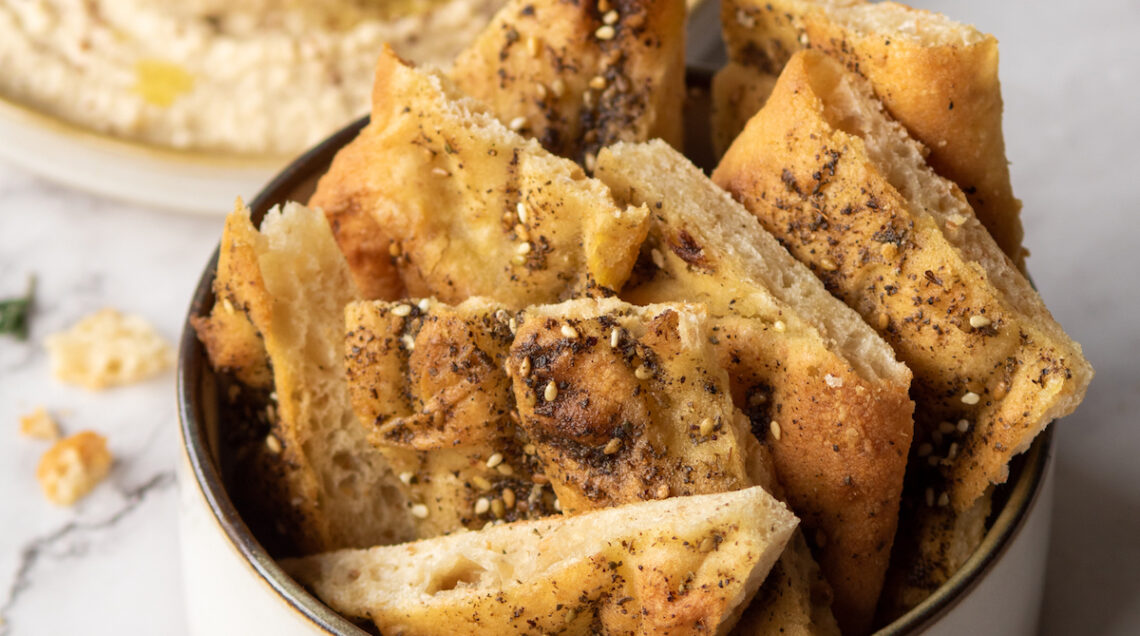 Ecco una focaccia di tradizione mediorientale condita con una miscela di spezie, tra cui spiccano timo e origano