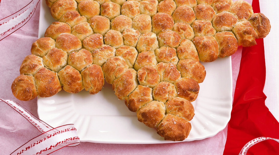 2) Rovescia il foglio, mettilo su una teglia e spennellalo d'olio. Riduci 900gr di pasta da pane a palline regolari della grandezza di una noce, ed appoggiale sulla carta da forno una accanto all'altra, seguendo il disegno della stella in trasparenza.