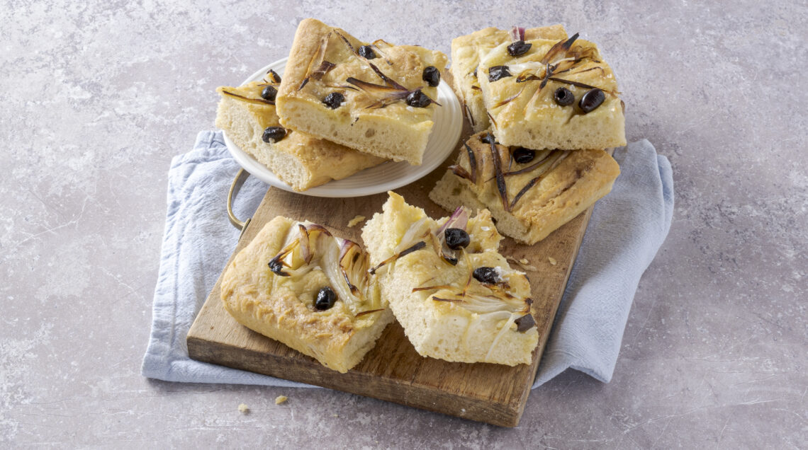 Pranzo fuori casa in compagnia? Che si tratti di un picnic in campagna o una pausa sotto l'ombrellone in spiaggia, la focaccia è il cibo perfetto da condividere. Provate questa focaccia con olive di Gaeta e cipollotti preparata con i prodotti Aldi