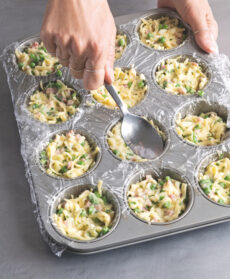 Rivestite di pellicola uno stampo da 12 muffin, riempite gli incavi con i tagliolini schiacciando bene; mettete in freezer per un'ora. Sbattete 1 uovo e 1 albume con sale e pepe. Sformate i tagliolini, passateli nell'uovo e poi nel pangrattato e friggete poco per volta in abbondante olio di semi.