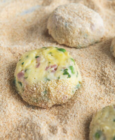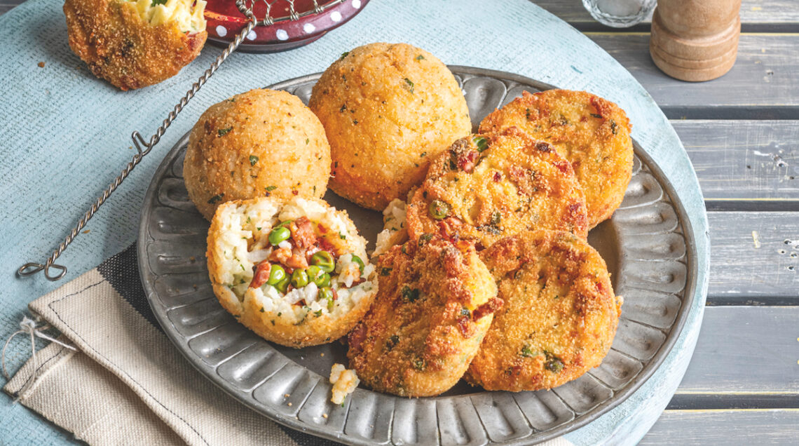 Un'insolita frittura preparata con tagliolini, riso, prosciutto, pancetta e piselli. La panatura in uova e pangrattato risulta croccante attorno a un ripieno ricco e morbido. Queste frittelle si consumano bene calde ma anche fredde per accompagnare un ricco buffet da aperitivo o per una serata informale tra amici.