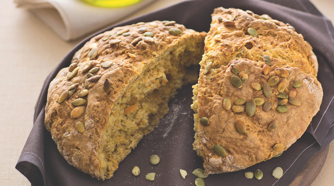 Il pane di farro alle carote, soffice e tenero, è facile da preparare. Con yogurt, origano e semi di zucca, è perfetto anche a colazione