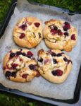 7) Allineali via via sulla la placca del forno, unta d’olio e leggermente infarinata, e incidili a croce. Coprili con un telo e falli lievitare altri 15 minuti.