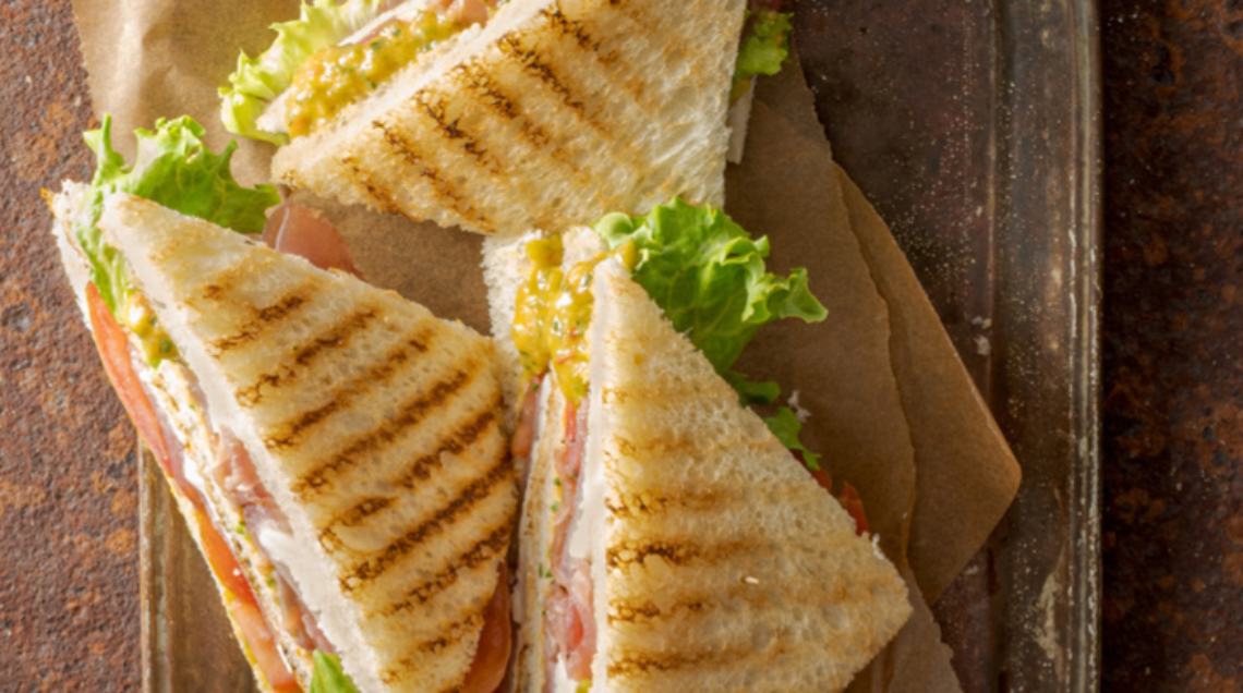 2 Componete i 4 sandwich sovrapponendo pane, pomodoro, ancora un po' di salsa verde, tonno, insalata, bufala e pezzi di pancetta; fate un secondo strato uguale al primo e richiudete i sandwich con il pane rimasto con la parte condita verso il basso; servite.