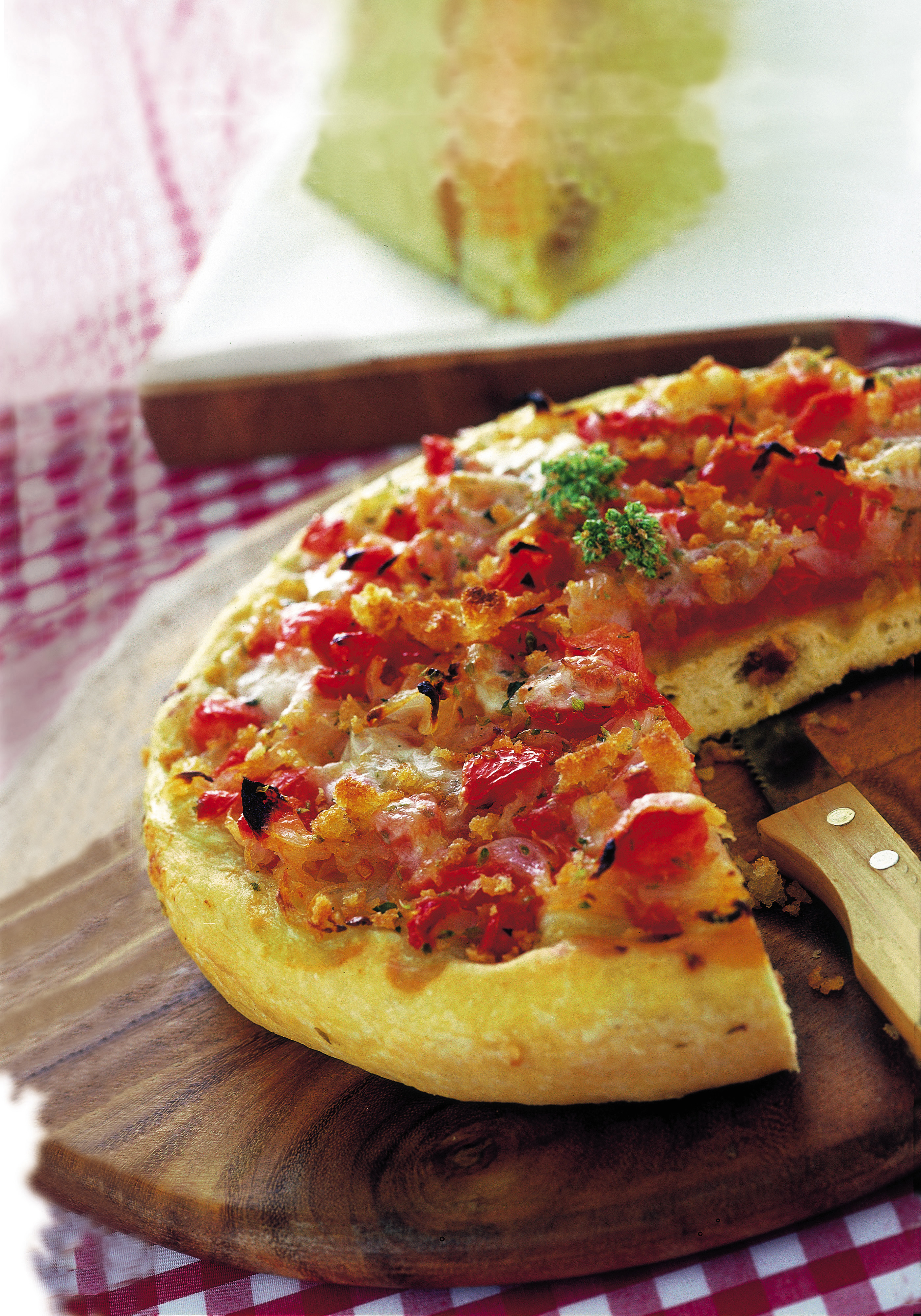 3) Trascorsi i 30 minuti copri con il formaggio, la mollica rosolata in 2 cucchiai di olio e cuoci ulteriormente a 200° per altri 10 minuti. Abbina il tuo sfincione fatto in casa con un nero d'avola della Sicilia occidentale, ampio e maturo.