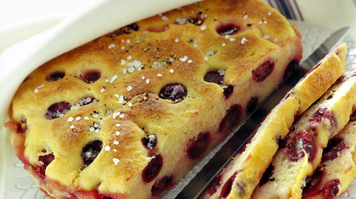 Trascorso il tempo della lievitazione, lavora l'impasto per sgonfiarlo, unisci 500 g di uva nera, versalo in uno stampo di 28 cm di diametro, leggermente oliato, cospargilo con un pizzico di sale grosso e di grani di pepe nero pestati, coprilo e fallo lievitare ancora per un'ora.