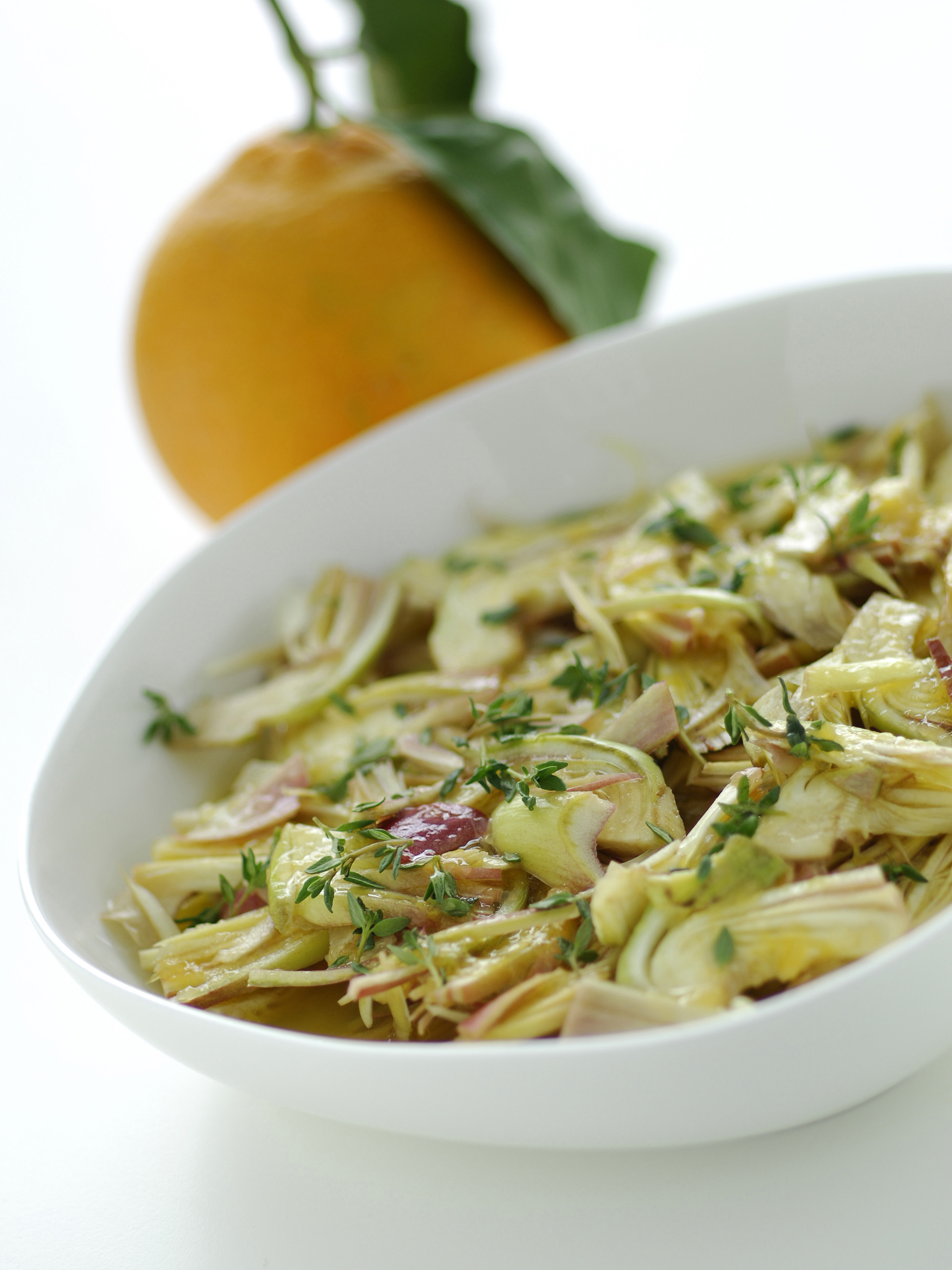 3) Elimina l’acqua dai carciofi, condiscili con il succo degli agrumi e lasciali insaporire per 30 minuti.