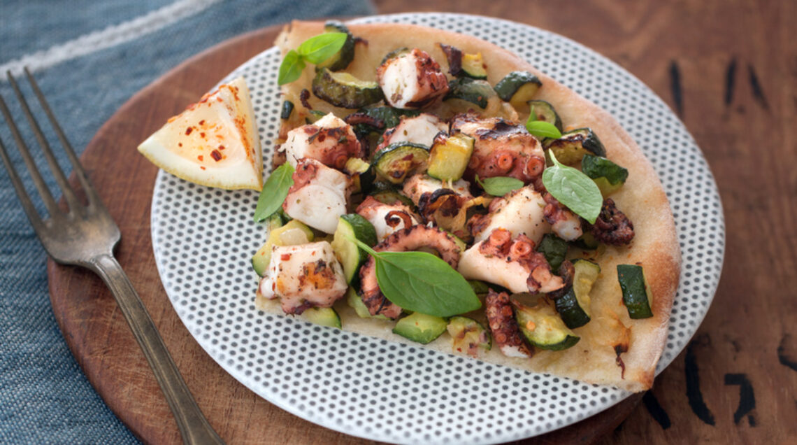 La ricetta perfetta per una pizza bianca a base di polpo e zucchine, un condimento particolare e gustoso per un piatto da offrire ai propri ospiti