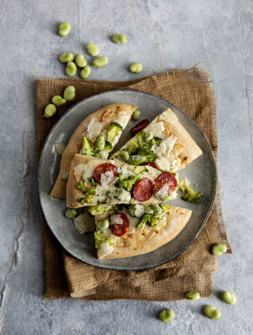 1 Stemperate il lievito in una grossa ciotola con 1 cucchiaio di acqua tiepida, poi aggiungete altri 325 ml di acqua a temperatura ambiente e infine incorporate le farine: amalgamate gli ingredienti aggiungendo un cucchiaino di sale e lavorate il composto prima nella ciotola, poi sul piano di lavoro leggermente infarinato, fino a ottenere una palla liscia e omogenea. Copritela con la ciotola capovolta e lasciatela riposare per 30 minuti circa.
