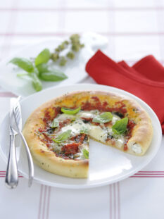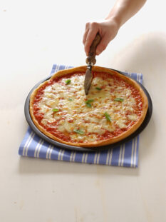 Pizza con pomodorini, burrata e cipolla di Tropea