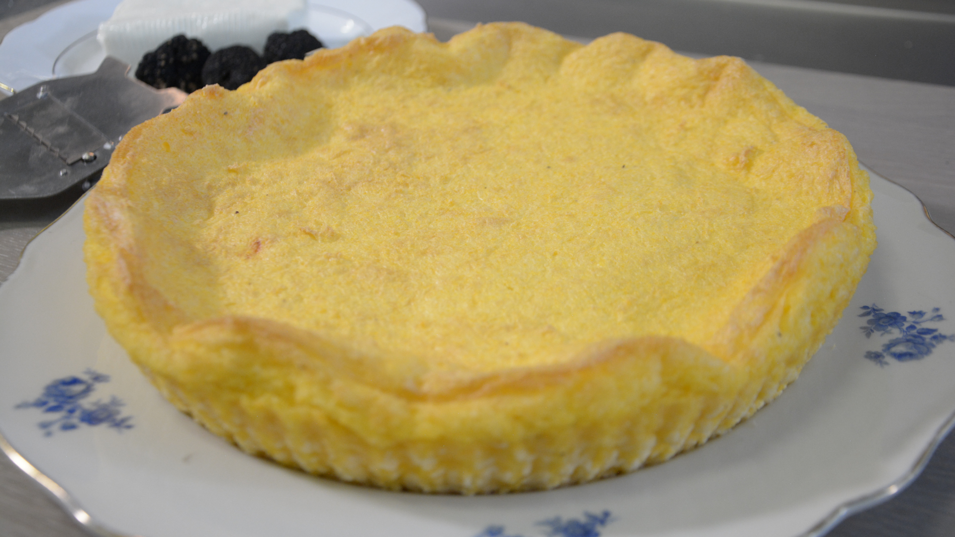 3 Quando la polenta sarà tiepida, aggiungete i tuorli uno alla volta e poi subito dopo, con un gesto dal basso verso l’alto, aggiungete gli albumi montati a neve.