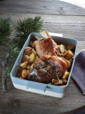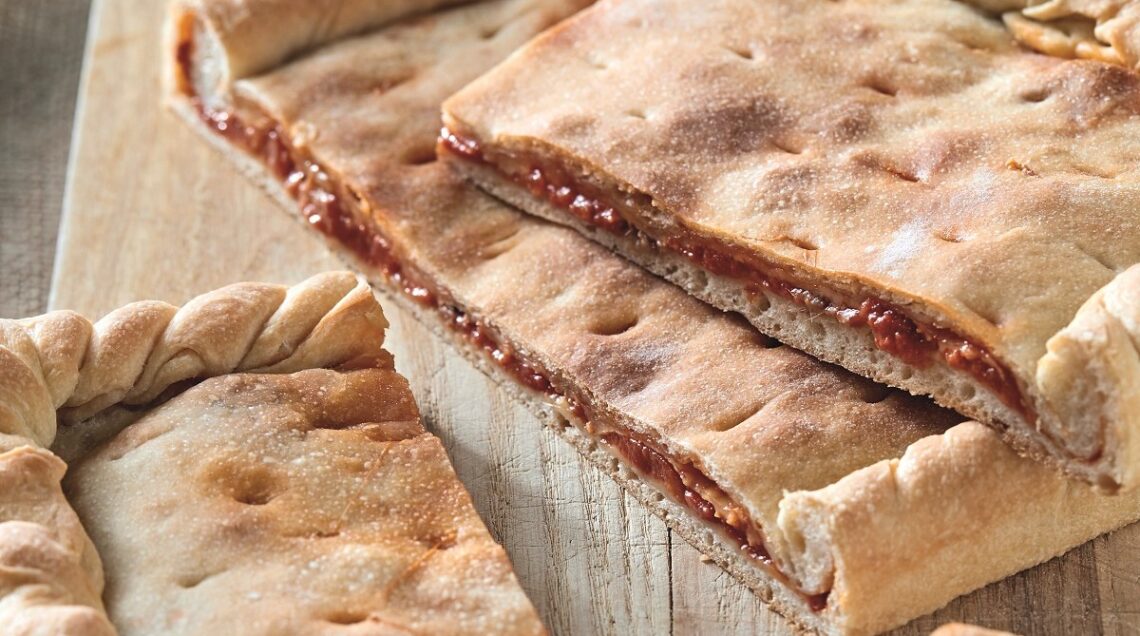 3 Coprite con la pasta rimasta, sigillate i bordi creando un cordoncino, bucherellate la superficie e cuocete in forno già caldo a 230° per 20 minuti.