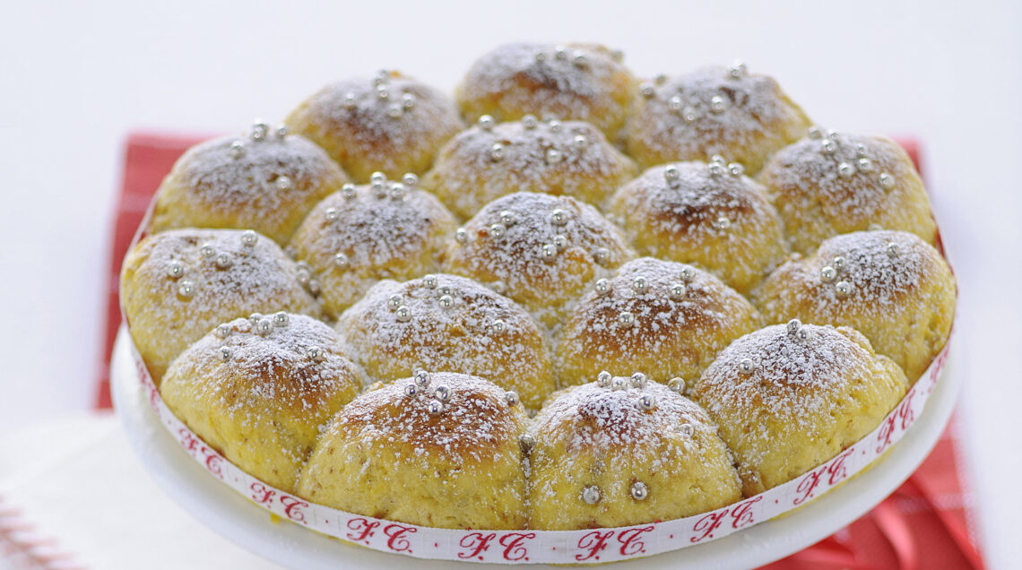 5) Disponi le rosette ai fichi in una teglia da 30 cm di diametro rivestita di carta forno, coprile e lasciale lievitare ulteriormente per circa 40 minuti. Cuocile in forno già caldo a 180° per 35 minuti e, una volta fredde, spolverizzale con lo zucchero a velo.