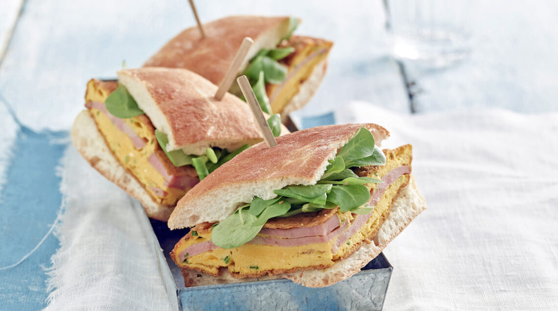 Con pane arabo e grana padano, questo sfizioso panino profuma di erba cipollina. Ideala in pausa pranzo o per un brunch
