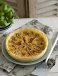 3) Priva il formaggio della crosta e taglialo a fettine. Scalda una padella antiaderente, unta con un velo d'olio. Versaci un mestolino di pastella, che si allargherà formando un dischetto di circa 10 cm: cuoci il pancake 1 minuto circa, voltalo con una paletta e termina la cottura sull'altro lato.