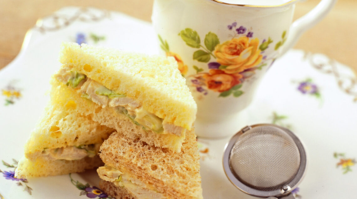 3) Completa e servi. Prima di servire, elimina i bordi di crosta, tagliali a metà lungo la diagonale e poi dividili ancora in 2 in modo da ottenere piccoli triangoli. Servi i sandwich al pollo con il tè.