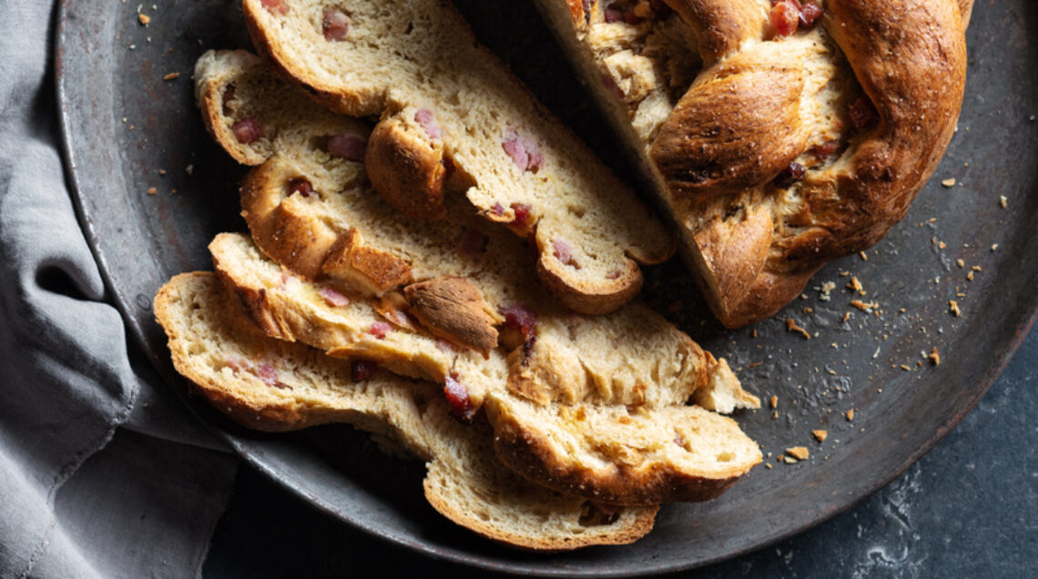 Una pagnotta rustica, morbida e golosa che racchiude tutto il sapore della pancetta. Vi basterà cfreare un impasto a basse di farina, lievito, uova, burro, latte e zucchero ed unirvi la pancetta.