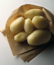 Lessate la patata con la buccia in acqua bollente per circa 30 minuti, scolatela e sbucciatela. Lasciatela raffreddare del tutto e schiacciatela. Spezzettate il lievito in una ciotola e scioglietelo con 300 ml acqua, poi unite la patata e via via le farine setacciate (tranne 50 g di Saragolla). Alla fine incorporate il sale. Controllate la consistenza dell'impasto: se è troppo morbido e appiccicoso, aggiungete la Saragolla tenuta da parte. Fate una palla e lasciate lievitare l'impasto coperto per 1 ora.