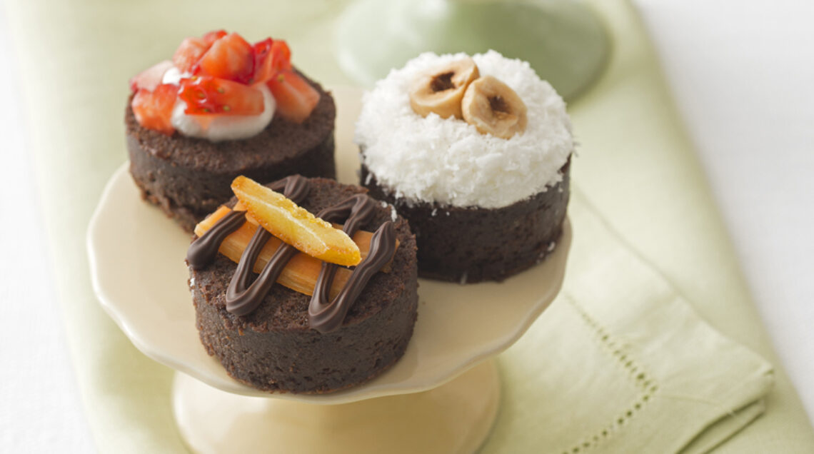 3)Sfornatela, lasciatela raffreddare e tenetela in frigo 1 notte. Con un coppapasta di 4-6 cm intagliate tanti cilindretti e guarniteli con panna montata e fragole; mascarpone, cocco grattugiato e nocciole; scorze di agrumi candite e cioccolato fuso.