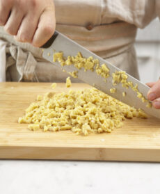 Mescolate 100 g di farina con 65 g di acqua e lasciate riposare per una notte; lavate e strizzate il composto per eliminare quasi tutto l'amido e ottenere solo la parte di glutine. Fate bollire per 90 minuti con aromi, verdure, alga kombu e salsa di soia.