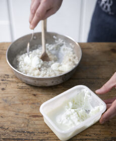 Preparate il burro di mozzarella. Scolate la mozzarella tenendo da parte il liquido di conservazione. Trasferite il formaggio in un frullatore e frullatelo con l'acqua di governo fino a raggiungere una consistenza burrosa. Mettete il composto in un contenitore ermetico e passate in frigorifero per circa 30 minuti.