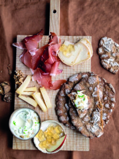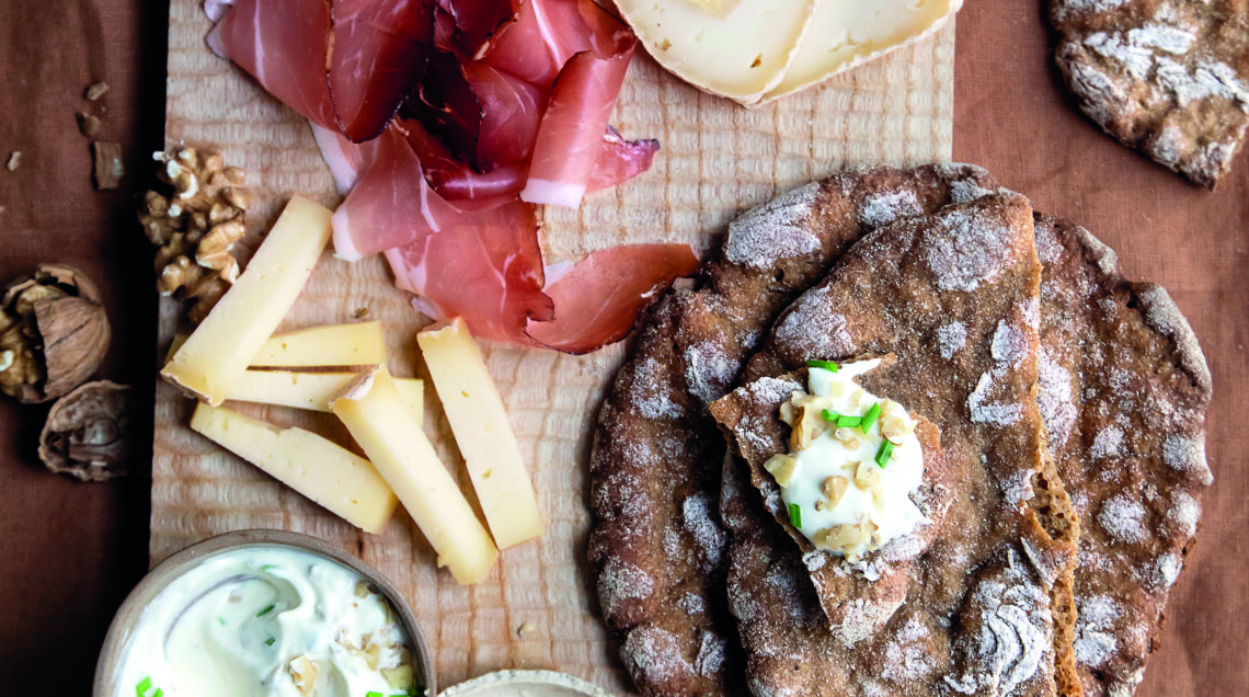 Schüttelbrot con speck, formaggio e gelatina di mele