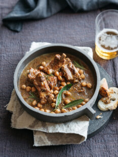 Ceci e spinacini con passata di datterini gialli e olive kalamata
