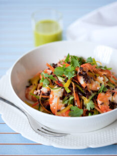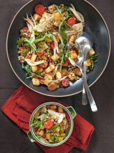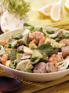 Rotolini di caprino al pepe verde con anguria e insalatine