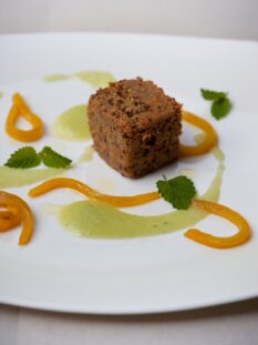 Tortino dorato di riso con farcia filante al radicchio