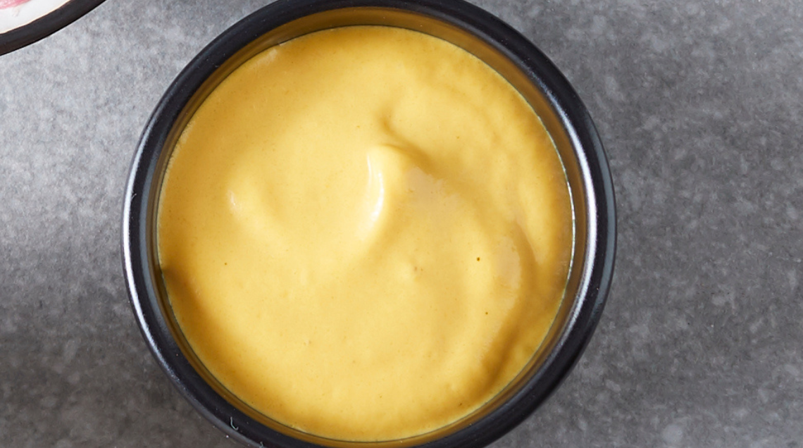 1 piccolo peperone giallo – 2 cucchiai di pasta di peperone giallo piccante (aji amarillo, nei negozi di alimentazione etnica) – 2 cucchiai di panna acida – 1/2 fetta di pancarrè – latte – 1 cucchiaino di salsa di soia – sale